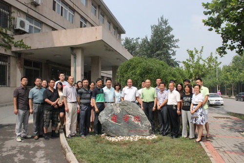 6 月 11 日上午, 商学院2014 届毕业生向学院赠送兴院石仪式在学院办公楼前举行。院党委书记李新锁、副院长王庆生、副书记翟云锋、各系主任、教师代表及本科、研究生毕业生代表参加。仪式由学工办副主任曹静主持。