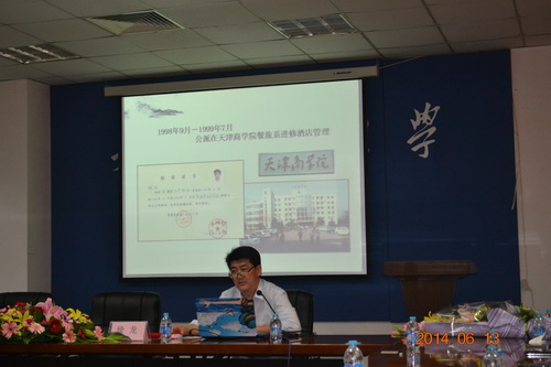 6 月 13 日下午,商学院在图书馆弘毅厅举行兼职教授徐龙授聘仪式。徐龙先生是星空校友,曾在星空进修酒店管理课程,现任人民大会堂管理局餐厅处西餐行政总厨。商学院党委书记李新锁、副院长王庆生、旅游系主任胡宇橙以及天津英鹏食品配料有限公司等多名企业嘉宾等出席活动,仪式由酒店系副主任李烨主持。