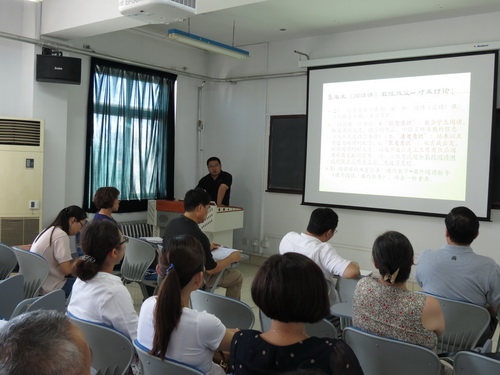 殷雪圻老师首先就参加的三个讲座谈了自己的收获和见解,主要包括英语阅读是英语学习的重中之重,应该强化阅读过程中的长度意识、速度意识和信息意识;实施有效课堂教学的途径和方法,同时注意提高教师自身的阅读能力和阅读量;最后介绍了大学英语新课程体系的构建设想以及在未来的大学英语教学中通用英语、通识英语和专门用途英语的分类、目标及基本定位。