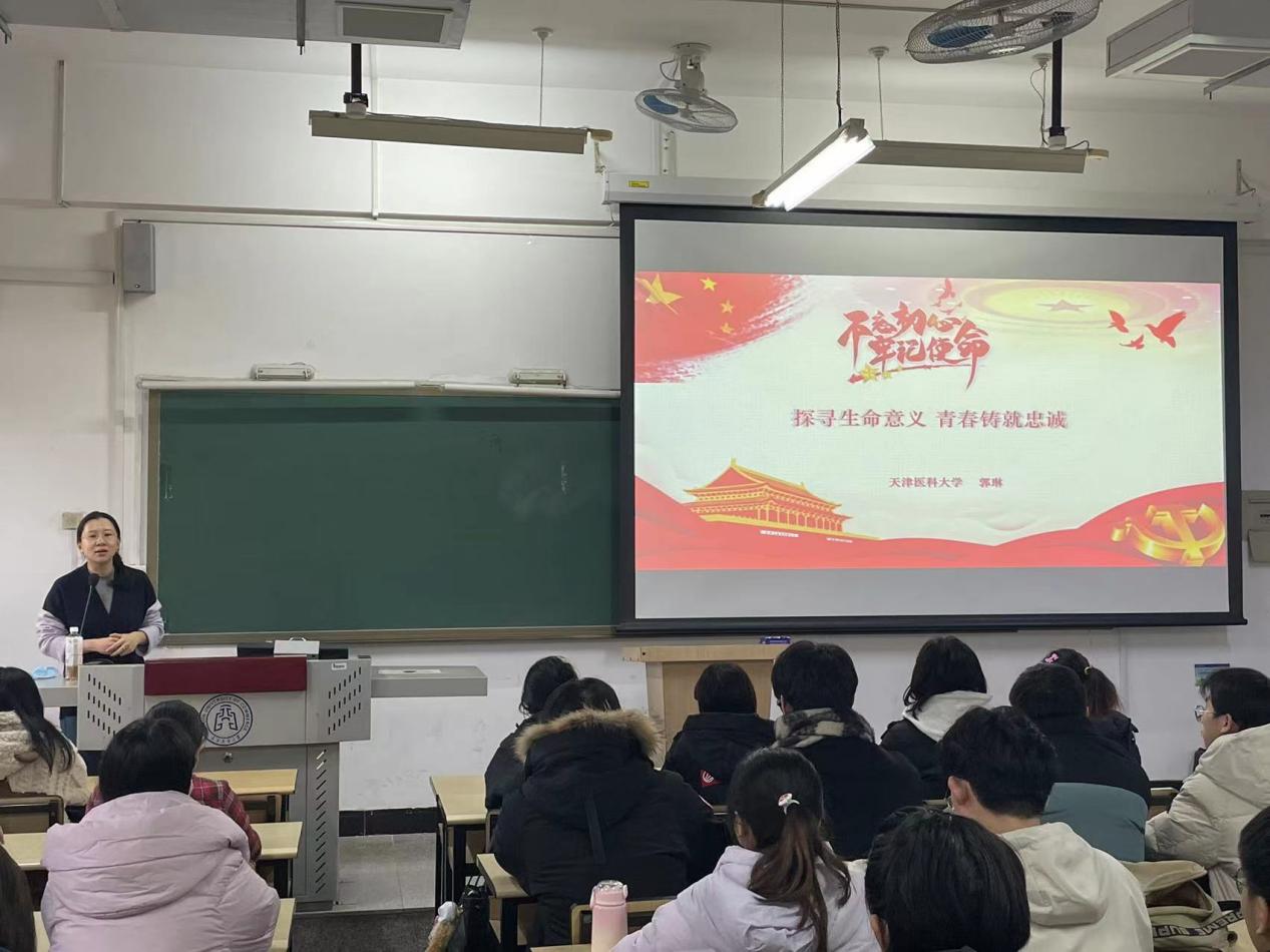 为深入学习贯彻党的二十大精神,加强对学生党员、入党积极分子的教育,不断提升党性修养,12月6日,理学院邀请全国优秀教育工作者、天津医科大学基础医学院学生工作办公室主任郭琳作题为“探寻生命意义 青春铸就忠诚”专题讲座。理学院预备党员、入党积极分子近70人参加。