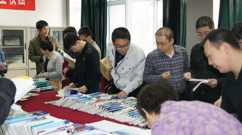 4 月 16 日下午,机械工程学院与机械、科学和高教三家出版社联合在 3 号实验楼 310 室举办书展,并开展赠书活动。机械工程学院副院长郭宪民教授、副院长杨传民教授到书展现场,气氛十分活跃。