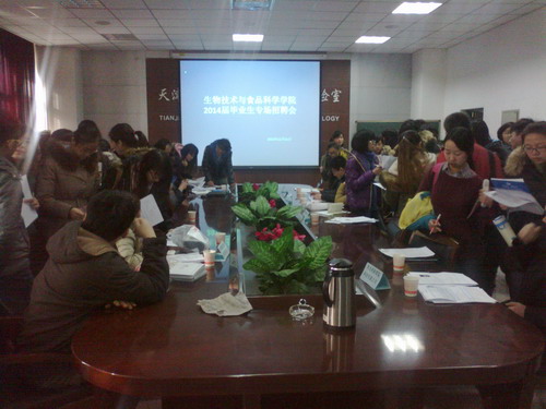 12 月 31 日上午,生物技术与食品科学学院邀请天津天成制药有限公司、中新药业天津乐仁堂制药厂、华润雪花啤酒 ( 中国 ) 有限公司、青岛利和萃取科技有限公司、北京锐拓生物工程设备有限公司和天津博康天蜜科技发展有限公司等六家企业到校招聘毕业生。为学院本科、硕士毕业生提供工艺技术员、食品工程师、学术专员、项目经理、市场开发和营销等岗位 37 个。