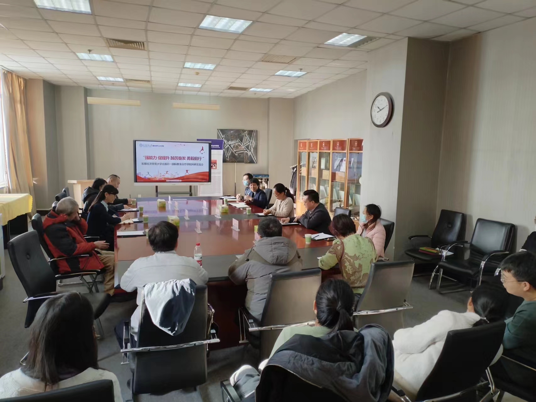 12月28日上午,首都经济贸易大学出版社社长杨玲、采编部主任徐燕萍等四人,应邀到国际教育合作学院参加学术交流会,国际教育合作学院党委书记乔秀梅,科研处副处长张阳,党委副书记、纪委书记王舒婷,以及国际教育合作学院和管理学院部分教师参会。会议由国际教育合作学院副院长曹晓丽主持。