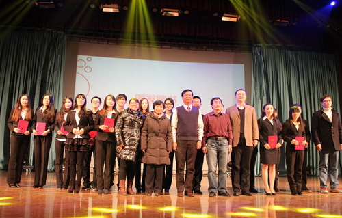 1 1 月 28 日 晚 , 信息工程学院在科学会堂举办了第十一届“诺思威”杯网络与科技文化节闭幕晚会。学院党委书记刘振航、院长潘旭华、院党委副书记王艳军、副院长陈雷、天津诺思威网络科技有限公司总经理吴非、副总经理宋涛及学院辅导员王斌、许兆光老师、学院团委学生骨干和千余名学生参加了本次闭幕式晚会。