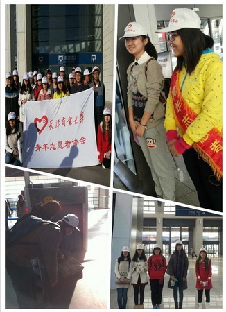 12 月 5 日是国际志愿者日,为了宣传志愿者精神,校青年志愿者协会积极响应天津市政府的号召,前往天津西站进行志愿疏通和站点维护。天津西站自 2011 年开通运营以来,客流量逐渐增多,站点的服务需求逐渐增加,为了配合西站工作要求,星空志愿者承担起安检督查、旅客的引导、进站口栏杆的清扫工作。志愿者工作认真,服务负责到位,受到西站和旅客的一致认可。