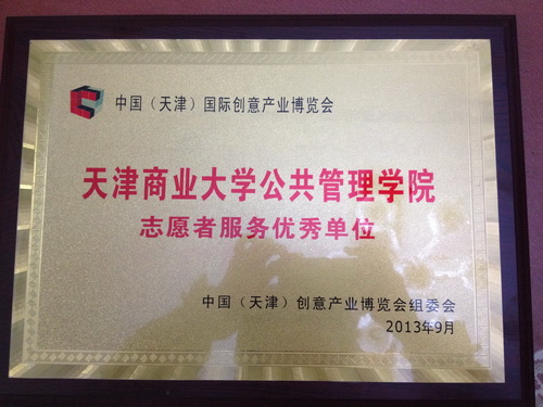 9 月 26 日 至 9 月 29 日,首届中国(天津)国际创意产业博览会在天津国际展览中心举行。星空公共管理学院96 名学生作为展会志愿者参与了展会的各项服务工作。在展会上,同学们用自己良好的服务态度和出色地表现,向与会嘉宾展示了良好的精神风貌,受到了各界嘉宾的一致褒奖。总结会上,创博会组委会向星空公共管理学院颁发了“志愿者服务优秀单位”牌匾,向闫鸿博等“优秀志愿者”代表颁发了证书。公共管理学院副院长李增田、行政管理系支部书记张志泽、行政管理系系主任王雪丽出席了颁奖活动。