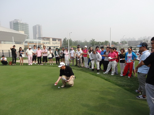 在三天培训期间,两位国际裁判根据执裁经验,运用案例教学对高尔夫规则进行了逐条讲解,难解问题包括球在水障碍、沙坑、球道、高草区、果岭等区域出现进行了现场执裁演练,高尔夫经营管理专业 2012 级学生参加了培训,考试合格的学员将颁发初级裁判员证书。