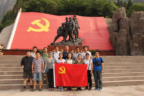 陡峭的狼牙山使大家回想起当年革命烈士抗击敌人时遇到的艰难险阻,真实地感受到抗战勇士们为了全中国的革命事业英勇无畏精神。在狼牙山革命英雄纪念塔旁,举行了随感交流会,党员同志们重温了入党誓词,入党积极分子也在党旗下表达了自己入党的决心。