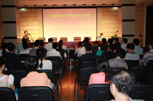 为庆祝建党92 周年,进一步加强党建工作和师德建设,6 月5 日,经济学院在校工会教工活动中心举办了庆祝建党92 周年党建工作交流会暨教师师德演讲比赛。会议由经济学院党委书记肖培荣主持,校党委组织部长王罡,校党委宣传部长张克明,校工会常务副主席宋树发出席会议,经济学院领导和学院全体党员共 60 余人参加。