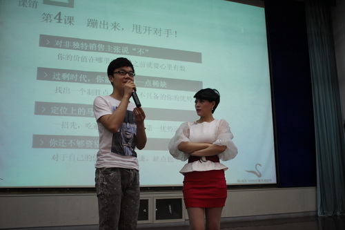 黄欢女士素有职谋女王之称,讲座中,黄欢女士以大量的亲身经历为主线,从胜在诚恳直白、启动感情按钮、价格暴涨的秘密、蹦出来,甩开对手、逆向恰是新方向、人性凸于微妙处、死去活来飙时间七个方面系统讲解了自我营销的方式和方法,以及在职场中的生存法则。讲座后,黄欢女士针对同学们提出的“如何看待 80 , 90 的关系 ” 、“自我营销的注意事项” 、“如何正确处理大学生恋爱问题”、“ 怎样抓住亮点,更好的对活动进行宣传”等问题一一解答。黄欢女士风趣、幽默地的语言,和极具亲和力的讲座风格,赢得了同学们的一致好评,现场不时爆发出热烈的掌声和欢呼声。