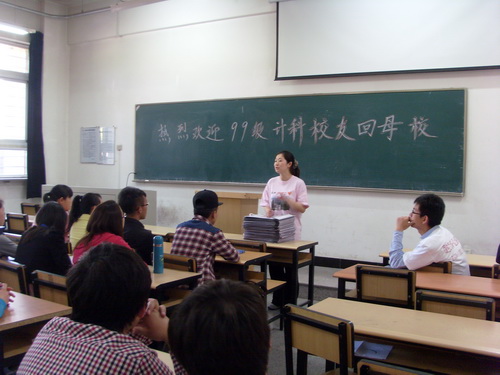 值此计科 99 级毕业生毕业 10 周年回母校之际,信息工程学院专门安排了在校学生与毕业生校友专题座谈会。会上,北京市发展和改革委员会谢熠校友、新华社杨猛校友、中国电子信息产业集团苏晓旭校友、在日本工作的张文海校友分别与在校的师弟师妹们进行了深情地座谈。他们勉励在校生要牢牢把握大学时光,珍惜课堂,珍惜图书馆,珍惜课外时间,学好专业基础知识,为今后工作夯实基础。大学生要时刻以学习为重,以全面提升自身综合素质为重。特别鼓励同学们一定要学好数学和英语,用于接受工作挑战。同学们还就考研与就业等问题向毕业生校友进行了请教,校友们逐一耐心解答。在校生深受鼓舞。