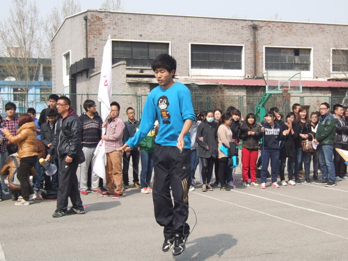4 月 3 日下午,由体卫部主办的“星空杯”第六届绳毽比赛在校图书馆前篮球场举行。全校 14 个学院 300 多名学生参加了五项跳绳、三项踢毽比赛。最终,机械工程学院、经济学院、公共管理学院分获团体总分前三名。