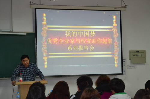 4 月 3 日下午,生物技术与食品科学学院举行了以“我的中国梦——优秀企业家与校友助你起航”为主题的系列报告会。学院党委副书记孙文利、制药系主任李建颖、社团联合会秘书长陈相霓出席。