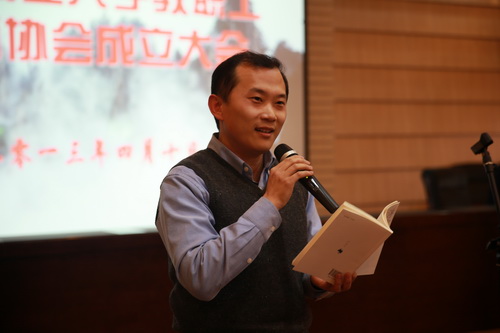 4 月 10 日下午,校朗诵协会在校工会多功能厅正式成立,校党委副书记杨万义出席并致辞,校朗诵协会会员和朗诵爱好者三十多人参加会议。