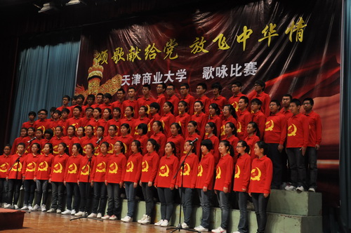 本次比赛共有 14 个学院参与。比赛中,经济学院学生带来的大合唱《没有共产党,就没有新中国》、《团结就是力量》与身上带有党徽的鲜红色 T 恤相得益彰,让人印象深刻;外国语学院学生的大合唱《我和我的祖国》、《同一首歌》激情高昂,点点烛火和中外语结合的标语是最显著的特色;《咱们工人有力量》、《当那一天真的来临》,公共管理学院的同学们身着迷彩服,以他们嘹亮的歌声,整齐有力的动作,赢得阵阵喝彩。最后,伴随着星海合唱团的《我爱你,中国》和《阳光路上》,本次比赛完美落幕。