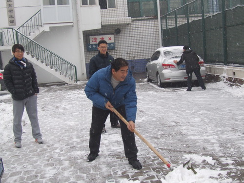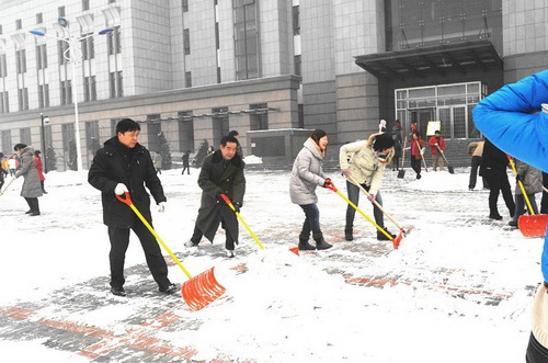 体卫部部分老师在穆瑞杰主任的带领下,清理路面积雪,为前来上班老师和学生提供方便,让师生们感受到了温暖,增强了部门的凝聚力和向心力。