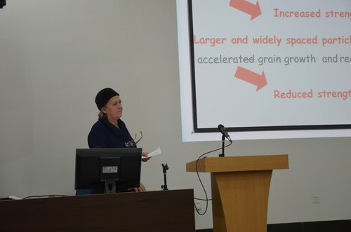 12 月13 日Xiao Yi 博士、Viseslava Rajkovic 研究员为机械学院青年教师和研究生分别做了题为“ Boundary integral based Finite Element Method ”和“ Properties of Copper-Based Composite Reinforced with Al2O3 Particles of Different Size ”的学术报告,报告由机械工程学院王怀文副教授主持。报告后,参会师生就当前学术界的热点问题与两位教授进行了热烈的讨论。