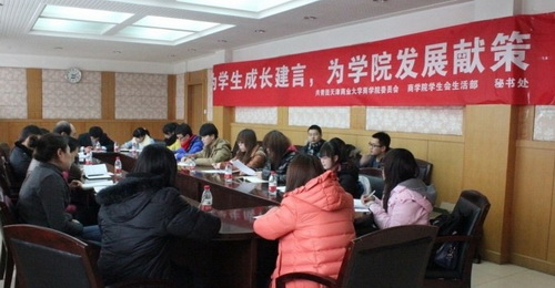 为畅通学院领导与学生之间的交流平台,凝聚学生力量,让学生参与学院管理,及时化解学生学习、生活中遇到的困难,引导学生主动学习、积极进取、健康发展, 12 月 14 日下午 ,商学院在 310 会议室举行了第二届建言献策专题论坛。商学院党委书记李新锁、副书记翟云锋出席,办公室主任安秀荣,学生工作办公室主任赵欣、副主任曹静、学工办指导老师陈悦及各班级学生代表参加会议。
