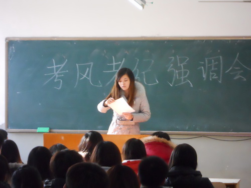 随后陈璐老师就考试相关事宜进行说明强调,阐述了考试作弊行为的不良影响及其危害,提倡同学们自觉恪守诚信。陈璐老师针对各年级的不同特点进行了分析,指出大一的同学要有合理的复习计划,认真面对第一学期的考试;大二同学要不断完善适合自己的学习方法并取得成绩的提升;大三同学则要夯实专业知识,积极全面应对考试。最后,陈璐老师要求班委务必把诚信考试的重要性传达给每位同学,并希望大家能通过自己认真复习,以平和的心态,客观地对待考试与成绩。
