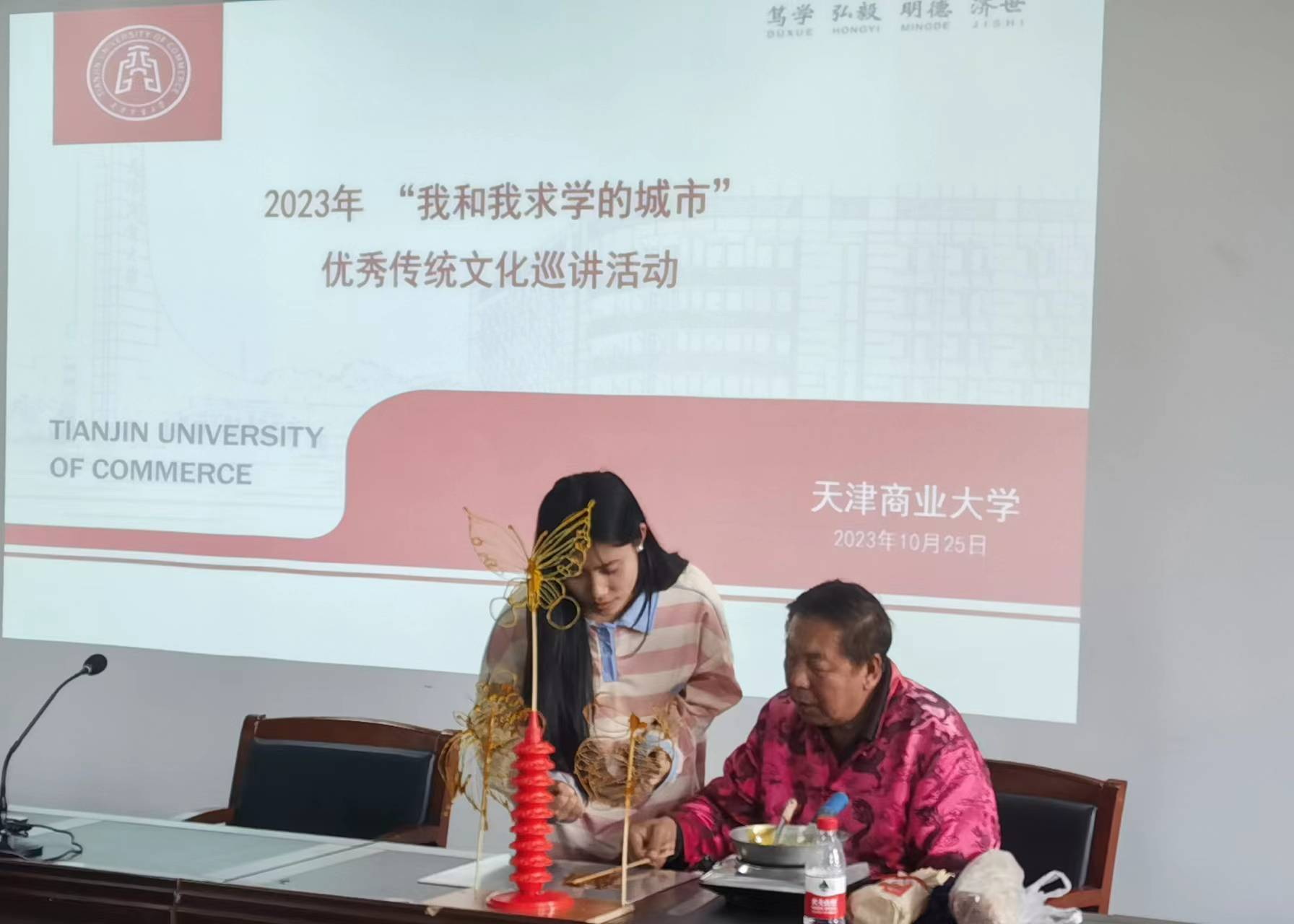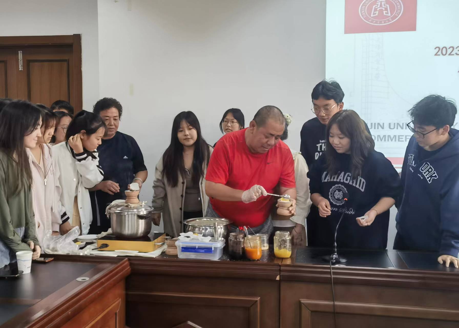 马建华老师在第三场讲座中以“马氏熟梨糕的历史传承与发展”为题,通过现场展示制作熟梨糕的方式,与同学们分享了马氏熟梨糕的历史传承与发展,讲述了自己始终坚持原汁原味的传统工艺与保证用料品质的匠心。