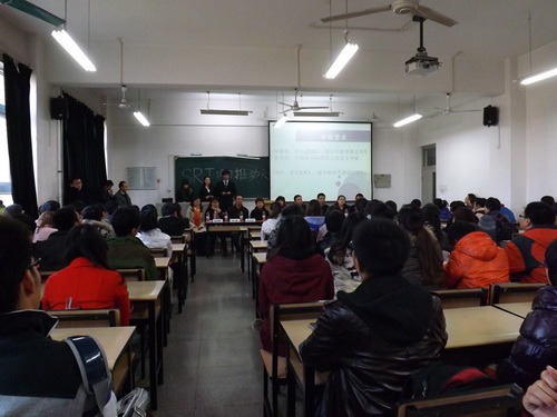 获得 2009 级SRT 项目优胜奖的同学们与大家分享了他们的成功经验。吴应凯同学鼓励大家积极参与 SRT 项目,通过研究的过程,整合专业知识,培养创新能力,体会其中的乐趣。张祎豪同学阐述了团队分工的重要性,并详细介绍了 SRT 的全过程。张力同学强调了实验中自主学习的重要性,并提醒同学们应提前关注 SRT 的动态,主动联系指导老师。
