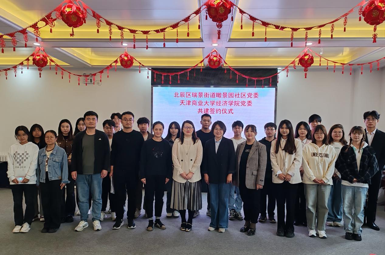 为深入学习贯彻党的二十大精神,落实天津“十项行动”要求,进一步发挥社会实践的育人功能,引领广大青年学子积极参与社区基层治理、服务群众,立志做有理想、敢担当、能吃苦、肯奋斗的时代好青年,10月25日下午,经济学院党委与北辰区瑞景街道瞰景园社区党委在瞰景园社区举行党建共建签约仪式。瞰景园社区党委书记郑世翠、副书记张建楠,经济学院党委副书记马静、专职辅导员以及学生代表参加。