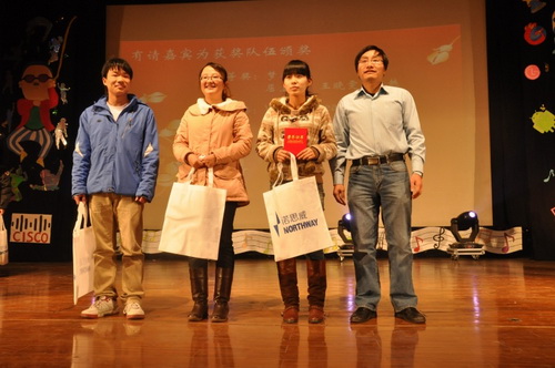 在闭幕式文艺演出晚会环节,节目形式多样,内容别出心裁,文艺部的开场舞《十二分之一》将时尚元素与民族音乐舞蹈结合,为大家展现了一个震撼的“流行民族舞”,观众们掌声不断。电商 1202 班的话剧《你幸福吗》的表演逗人发笑与引人思考。相声《打灯谜》、舞蹈《 addicated 》、话剧《星空达人秀第三季》等节目异彩纷呈,把整场晚会推向了高潮。