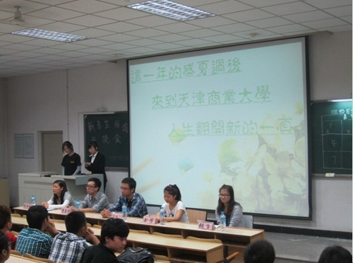 天津市优秀学生干部、挑战杯天津市金奖获得者陈湘云,天津市三好学生曾奕恺,经济学院学生会主席陈健玥,经济学院团委副书记余芳,国贸系团总支书记聂啓尧,金融系团总支书记任倩妮,11 级优秀学生代表张玺等同学在交流会上发言,就工作与学习的关系、社会实践、社团、英语学习等相关问题,结合自身的实践与2012级学生作了深入交流。