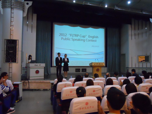 10 月 13 日 ,由外国语学院承办的“ 2012 年外研社杯英语演讲大赛星空XK体育决赛”在学术交流中心举行,大学外语教学部主任朱虹,教务处副处长计宏伟,外国语学院副院长王永祥、王占斌,外国语学院党总支副书记骆媛,以及来自大外部的杨惠媛教授、刘艳霞老师、姜丽老师和外国语学院外教 Malcolm 、教务处梁楠老师等应邀出席并担任评委。