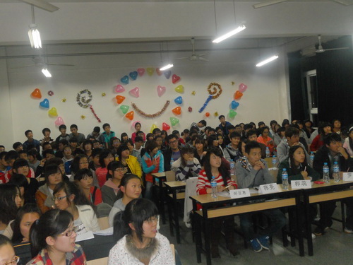 大赛紧紧围绕“Live In ,Love In ”的主题展开。第一环节“宿舍面对面”,用 PPT 或视频的形式使观众及评委对参赛宿舍有了初步的了解;第二环节“趣味知识竞答”让各位同学了解到平时并不十分关注的生活常识、安全知识,现场观众反响热烈;第三环节“宿舍一起玩”则让现场进入了一个小高潮,大家你猜我演,十分精彩;第四环节“我宿我 Show ”,各参赛宿舍通过才艺展示的方式使评委及观众对其宿舍有一个更加直观、更加充分的了解,他们的表演赢得了现场观众的阵阵掌声。