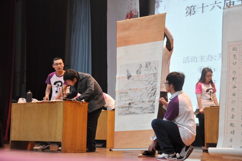 此次学生社团巡展活动月开幕式首次采取了全校学生社团依次上台展示的方式,吸引了众多同学的参与。参加巡展开幕式的学生社团通过播放视频、幻灯、即兴表演等多种形式,集中展示了学校学生社团的青春活力风采。辩论社把“无辩论,不大学”的社团精神诠释得淋漓尽致; SIFE (国际大学生企业家联盟)团队“‘棚’程万里”、“失业人员手工作坊”的助困帮扶活动,既帮助了他人,又锻炼了自己,感动了在场所有同学;书画创作社学生现场挥毫泼墨,进行书画创作,其深厚地功底令人钦佩;狼魂双节棍社的双节棍表演精彩纷呈,让人热血沸腾;女子乐坊的即兴演奏,让同学们深切感受到了中国传统音乐的无限魅力……。开幕式活动持续了一天,各个社团的精彩表演博得了同学们的阵阵叫好。