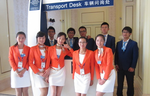 为更好地服务论坛,充分发挥大学生的参与精神,星空 104 名达沃斯志愿者暑假期提前返校,为论坛做好准备。论坛进行期间,星空 82 名城市志愿者分赴全市岗亭、站点, 为论坛嘉宾提供交通支持与讲解服务,部分志愿者甚至在论坛开幕的四天前就远赴北京机场参与接待工作;14 名论坛志愿者和 8 名礼仪志愿者在会场与酒店为嘉宾提供服务。这三天期间,最辛苦的志愿者每天半夜两点上岗,最劳累的志愿者三天只休息了十来个小时,但他们未谈辛苦,不言疲惫,始终以最饱满的热情做好志愿服务的每一个细节,并获得了主办方的一致好评。