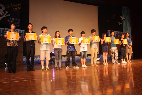 本次晚会中,校社团联合会指导老师王樱洁为大学生通讯社和大学生科技协会两个甲级社团,青年志愿者协会、辩论社、绿丝带、狼魂双节棍、爱心社、尚舞拉丁舞社、 SIFE 、大学生成长促进协会、电影俱乐部、 5266 轮滑社 10 个乙级社团和社团优秀负责人颁发了奖状。