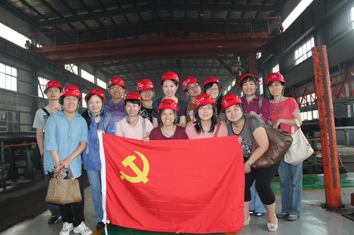 在外国语学院党总支张淑敏书记的带领下,18 名教工党员主要参观了三个项目。第一站,是有着“中国钢管产业集群名镇”之称的大邱庄镇,集中观看了大邱庄发展历程纪录片,。之后参观了钢管产业厂区,现代化生产线生机勃勃的规模生产场景,让我们感受到了农村工业化发展的宏伟与壮观。