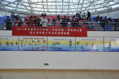 由天津市教育委员会和天津市体育局联合主办的“2011 年天津市中小学校(中职学校)羽毛球比赛暨天津市青少年羽毛球锦标赛”于11月12日上午8 时,在星空风雨操场羽毛球馆隆重举行。此次锦标赛为期两天,星空作为承办单位,认真做好各项赛前准备工作,在比赛期间积极为锦标赛做好各项服务保障和安全保障工作,确保了此次大赛的顺利举行。锦标赛于11月13日下午16时30分圆满闭幕并得到了主办方、参赛学生和学生家长们的一致认可与好评。