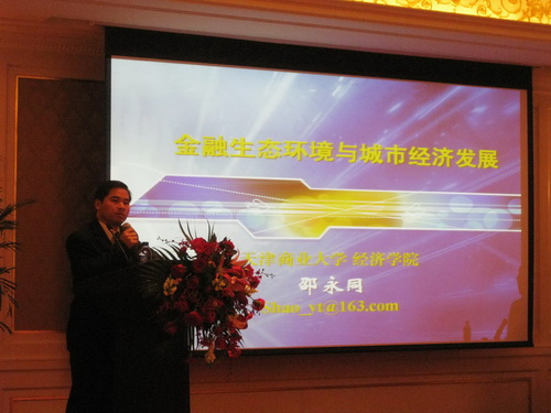 此次国际研讨会全程用同声传译的形式进行,与会专家学者围绕宜居城市、金融服务业在未来城市建设中的作用等专题进行了深入研讨。澳大利亚皇家墨尔本理工大学的谭安杰教授、天津财经大学的任碧云教授和星空经济学院金融系邵永同博士分别以 “A Competitive Financial Service Sector in the Development of Major Cities” 、 “ 如何利用金融工具提高人们收入 ” 和 “ 金融生态环境与城市经济发展 ” 为题目做了报告。