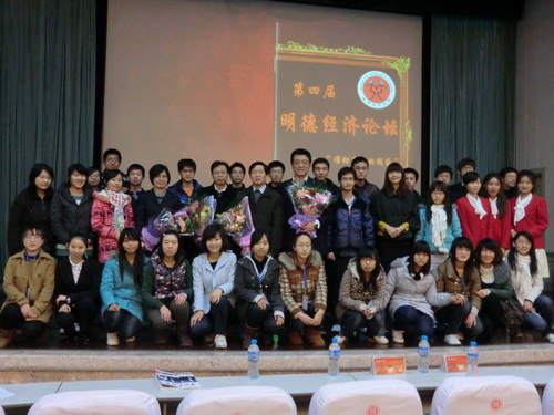 12 月 7 日 ,经济学院第四届明德经济论坛在学术交流中心举行。经济学院副院长王常柏、国际经济与贸易系主任王中华、经济学系贾献东老师、银河证券高级投资顾问叶津津参加本次论坛并发言。经济学院院长刘小军、院党委副书记张玉娟、院团委书记王素芳出席了本次活动。