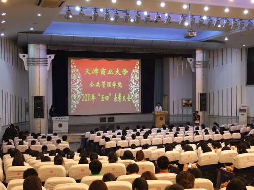 5月18 日下午,公共管理学院2011 年“五四”表彰大会在学术交流中心隆重举行。公共管理学院院长孙钰,副书记刘均玲,副院长李增田、关兴丽以及学院全体教师出席大会,近500 名团员青年参加了大会,院团委书记孙瑶主持大会。