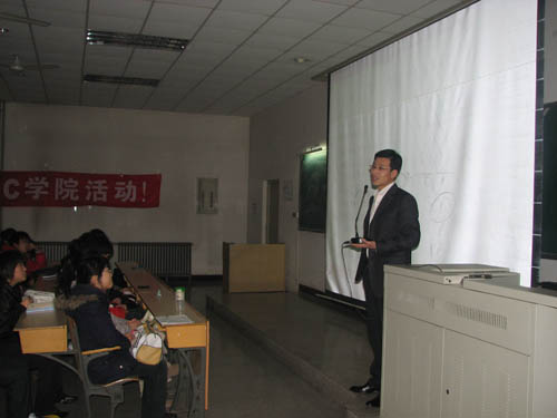 11 月 27 日 ,机械工程学院举办职业生涯讲座,中国企业教练公益学院副院长、北京飞迪曼公司心理咨询专家、高级咨询师、心理培训师、著名心理行为训练专家梁永存为近 400 名学生做了职业生涯规划讲座,受到了同学们的欢迎。