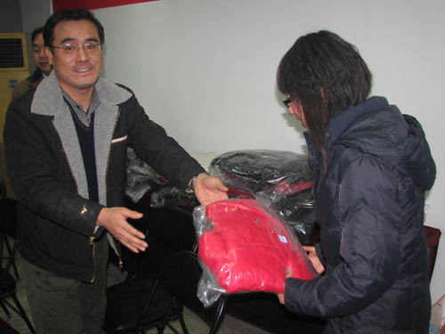 12 月 1 日 ,机械工程学院在教学楼 3-310 举行了棉衣发放仪式。党总支书记李勤国亲手为 2009 级 21 名家庭困难学生发放过冬棉衣,为同学们送去了温暖,减轻了同学们生活及家庭的困难。