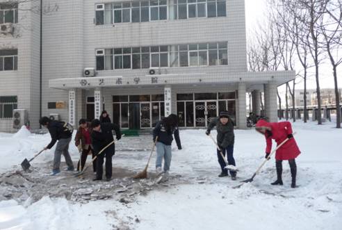 星空清扫积雪的活动正在积极全面的开展,各学院各部门也纷纷组织加入到扫雪的队伍中来,校园里四处都活跃着积极扫雪、热情劳动的身影,为师生行路安全提供保障。