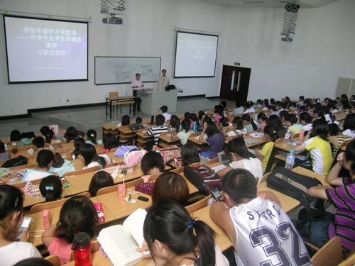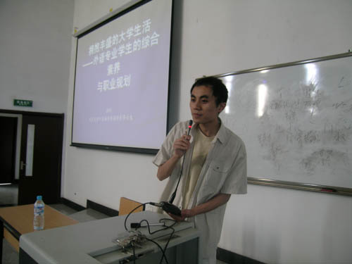 顾悦博士结合自身的经历讲述了在世界经济滑坡,就业形势严峻的当前,外语专业大学生应当有怎样的心态,如何做到以不变应万变;回答了如何通过了解自己、尊重自己、培养自己的综合素质,提高自己的竞争力、追逐自己心中的梦想、做出合理的职业规划,最终无憾于四年的青春;谈到了个人的价值体现、个人的天赋和素养等发人深省的话题。他诙谐的语言,独到的思想,精彩的演讲赢得了同学们热烈掌声。在讲座过程中,同学们积极参与互动,踊跃提问发言,场面气氛热烈,顾悦博士针对同学们提出的问题一一给予回答。