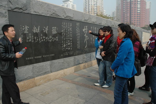 汉字文化墙以宏大的规模,按形成发展的时间主线展示了中国文字多彩纷呈的魅力。体验中,通过杨琪老师绘声绘色的讲解和对石墙上汉字的直观触摸,留学生们不仅加深了对汉字的了解,更激起了对中国文化、中国历史的兴趣。