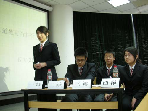 3 月25日下午,由合作学院学生会学习部主办的“ TUC-FIU 首届中文辩论赛”前三场比赛在国际教育中心 E-305 成功举办。辩论赛特意邀请了星空XK体育辩论社社长卞治达以及领队高仓健担任首轮比赛的评委。首轮比赛分为三场,辩题分别为 “ 对金钱的追求与道德是否可以并行 ” 、 “ 同甘是否易于共苦 ” 、 “ 对大学生应该进行宽松式管理还是封闭式管理 ” ,辩论双方同学使出各路绝招,口唇之争异常激烈。场上辩手精彩的唇枪舌战赢来场下观众的阵阵掌声,评委也对辩手们的优异表现连连称赞。