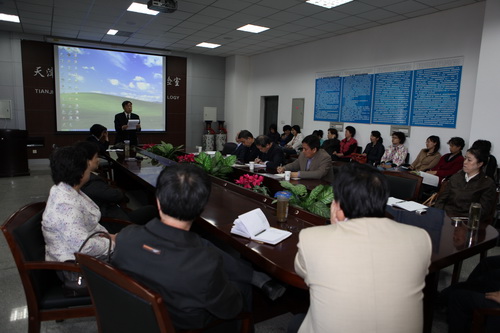 在深入开展学习实践科学发展观的活动中, 4 月 15 日 ,生物技术与食品科学学院在新实验楼 210 报告厅召开新专业建设研讨会,教务处于义良处长、王泓副处长、学报刘禹宏主任、设备处候其考处长、学院庞广昌院长、鲁晓翔书记、王素英副院长、陈庆森副院长、孙文利副书记以及全体教职员工参加了会议。