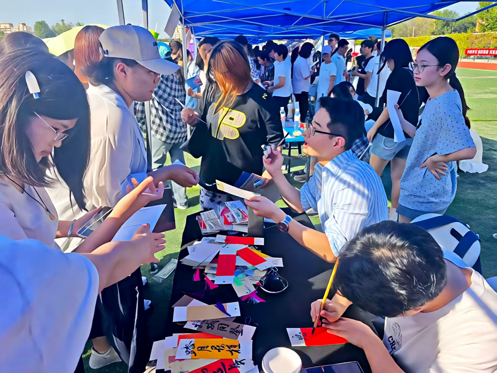 巡展汇聚了50余个学生组织与社团,通过多元形式的活动设计与互动体验,全面呈现了社团的文化内涵与育人功能。各社团立足自身文化特色,通过文创产品展示、互动体验等多种方式,全面展示社团活动成果与文化魅力,吸引了大量同学驻足交流。其中,传统文化类社团通过书法体验、传统服饰及礼仪展示、民乐演奏、茶艺表演等形式,生动弘扬中华优秀传统文化,增强了同学们的文化认同与情感共鸣。舞台区节目精彩纷呈,歌舞、朗诵、器乐等表演轮番上演,充分展现了星空学子昂扬向上的精神风貌,不断将现场气氛推向高潮。