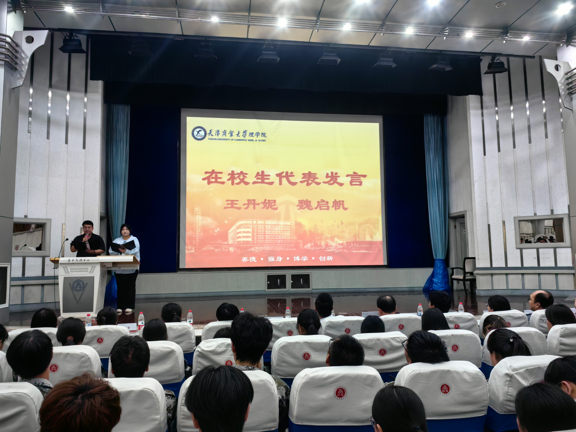 在校生代表2022级数据科学与大数据技术专业本科生王丹妮、2024级应用统计专业研究生魏启帆结合自身的学习与实践经历,分享了他们在专业探索、科研竞赛、学生工作经历方面的成长与收获,鼓励新生勇于尝试、乐于钻研,全面提升综合素质。2025级数据科学与大数据技术专业本科生沈世锦、2025级应用统计专业研究生杨若童代表全体新生发言,表达了对大学生活的无限憧憬与期待,并表示将牢记师长的嘱托,以奋进的姿态开启人生新旅程。