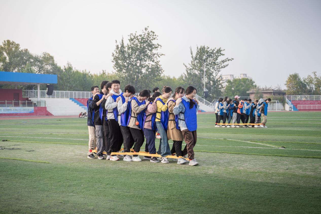 活动通过“反口令”“齐眉棍”热身并完成抽签分组,7支队伍快速完成团队创建与亮相后,核心拓展环节正式开启。“无敌风火轮”“巨人脚步”“运转乾坤”“旋风少年”“团体动力圈”五项特色活动接连上演,队员们或合力推动道具、同步突破障碍,或传递器械、协作完成绳上挑战,全程默契配合、彼此支援,现场呐喊助威声此起彼伏。比赛胜负之外,同学们更在一次次协作中拉近距离,收获了珍贵的默契与友谊。