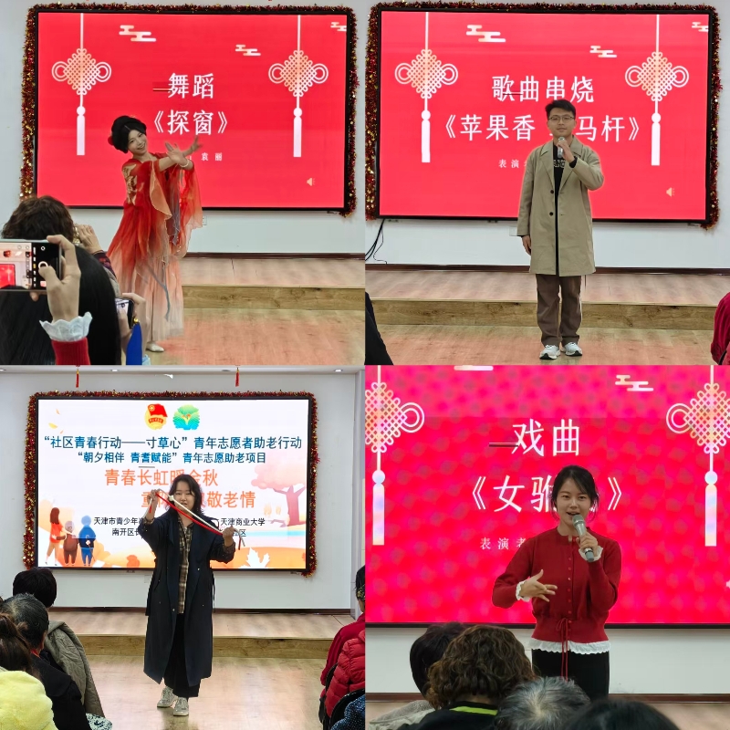 10月22日,在重阳佳节来临之际,校团委组织师生走进南开区建华里社区,开展以“青春长虹暖金秋,重阳欢叙敬老情”为主题的敬老慰问活动。同学们以青春热忱践行孝道文化,弘扬中华民族尊老、敬老、爱老的传统美德,为社区带去浓浓的秋日温情。