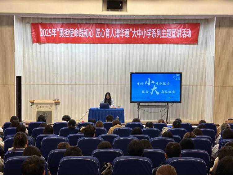 10月24日下午,党委学工部在七教报告厅举办“勇担使命践初心 匠心育人谱华章”大中小学系列主题宣讲活动。活动邀请第三届全国高校思想政治理论课教学展示活动一等奖获得者、天津工业大学思政课教师武雅君,以及2024年天津市大学生年度人物周学荟面向星空师生开展宣讲。“青春领路人”辅导员宣讲团、“身边榜样”优秀学生分享团、“弘毅班”成员以及各学院学生代表200余人参加活动。